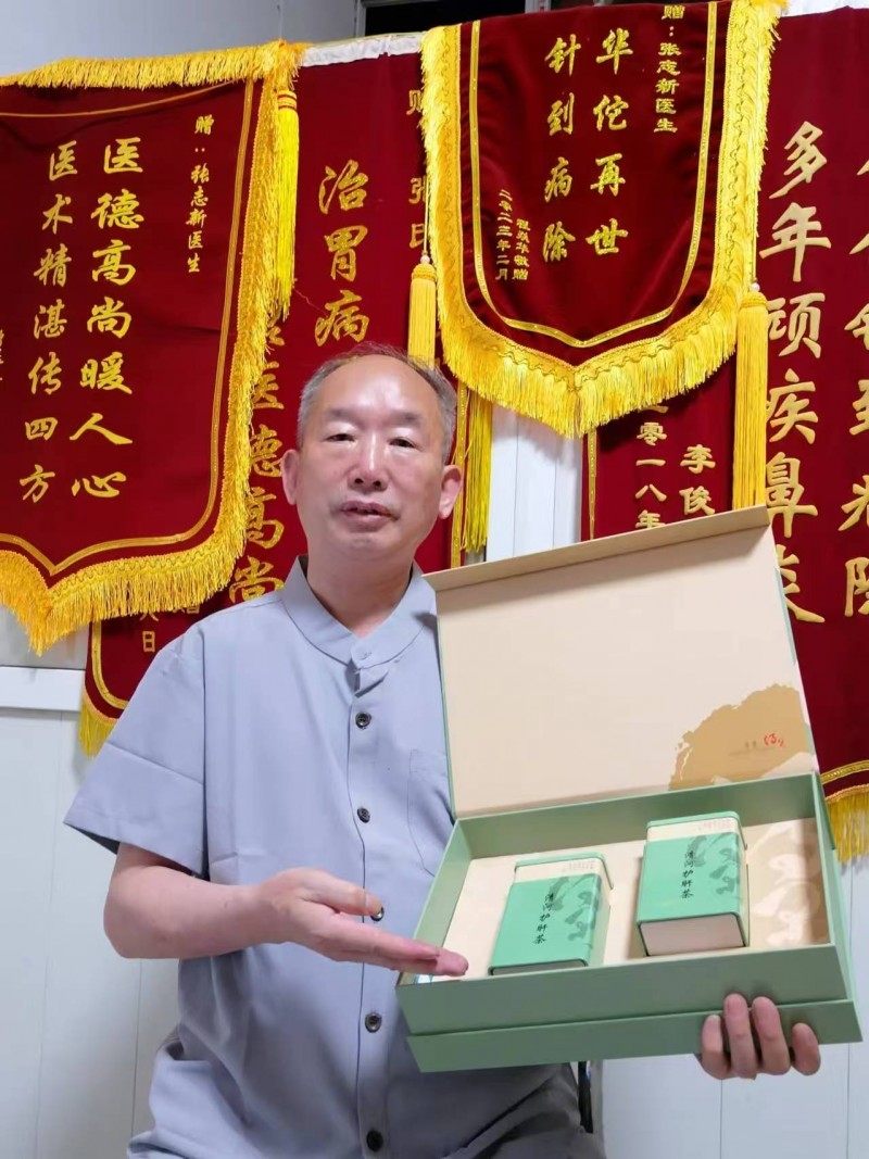 张医师自创的张氏传承伟夫清河护肝茶,有蔬肝解毒,扶正去邪之功效。效果显著,让很多患者群体受益。并已给此产品申请了企业执行标准批号。
